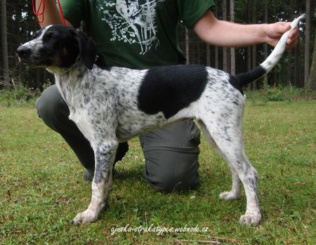 Vztah k ostatním lidem a ke zvířátkům: K lidem je Ajka samozřejmě i nadále vřele přátelská, snažíme se ale stále tlumit tuto vlastnost na únosnou míru. Už se rozhodně nezastavuje s každým, ale pokud někdo vypadá obzvláště zajímavě nebo se dokonce zdá, jakoby šel přímo k nám a byl tím pádem náš známý, nemůže si Ajuška pomoct a nadšeně mu běží vstříc. Většinou se dá přemluvit, že ten člověk není náš, ale také né vždy, a obzvláště těžká je pro ni situace, kdy má někde zůstat odložená a přitom na ni šišlá hrozně zajímavý kolemjdoucí. :-D S různými zvířátky Ajku učíme kamarádit kdykoliv je příležitost, abychom bránili loveckým pudům nejen zakazováním, ale hlavně zvykáním... Ajka se za poslední měsíc naučila mít ráda Bobra i kočky, ale ještě pořád nechápe, že si s nimi nemá hrát po psím způsbou. :-) Mezi své známé či kamarády už přiřadila také slepice, prasata a koně, v ZOO si zatím moc zvířátek neprohlídla, protože měla spoustu práce s čucháním. :-D